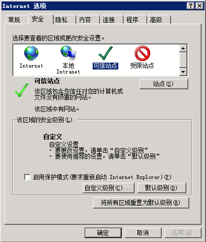 点击自定义级别按钮,显示如图: