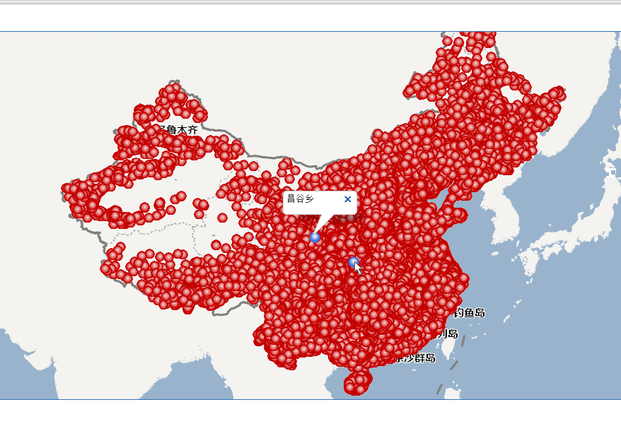 为了展现出大数据量的POI,我们也可以考虑将POI数据集通过iServer发布为临时图层,然后在客户端使用动态图层展现出来,这样解决了数据量大和跨浏览器的问题,但是这些POI没法响应鼠标事件。
